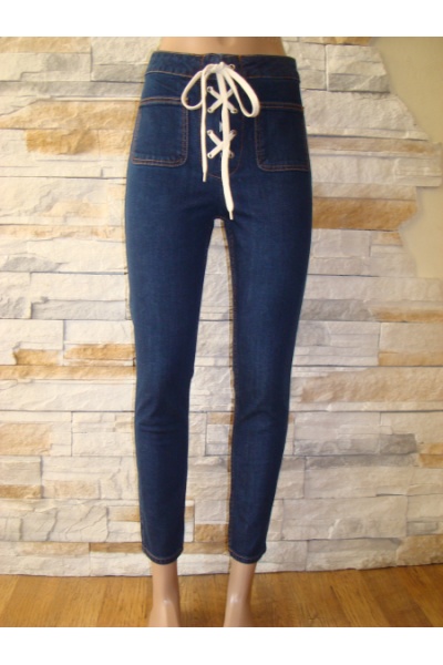 Стильные женские джинсы от известного испанского бренда Зара. Глубокий синий цвет!! Оригинальная застежка в виде шнуровки!! Два накладных карманчика. Укороченная длина - идеальный вариант под ботинки! Плотный коттон. Отличное качество!!