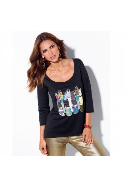 Стильный женский реглан от Venca (Испания). Всегда актуальный черный цвет! Яркая тематическая аппликация, вышитая пайетками. Шикарное декольте! Рукав три четверти. Удлиненная спинка. Отличное качество!!