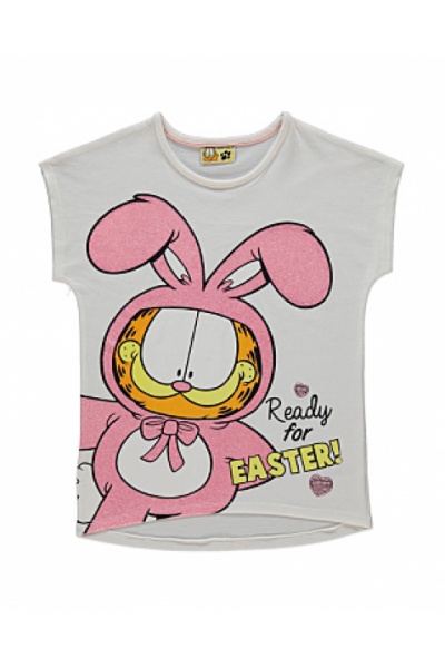 Яркие футболки для девочки George. Блестящий принт из мультфильма "Гарфилд". Удлиненная спинка. Натуральная ткань - 100% хлопок.
