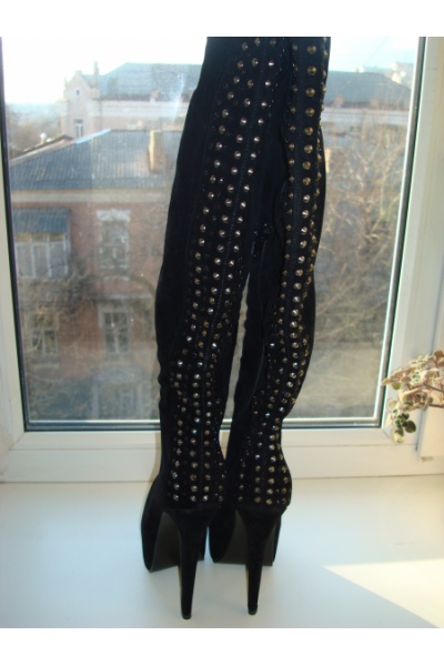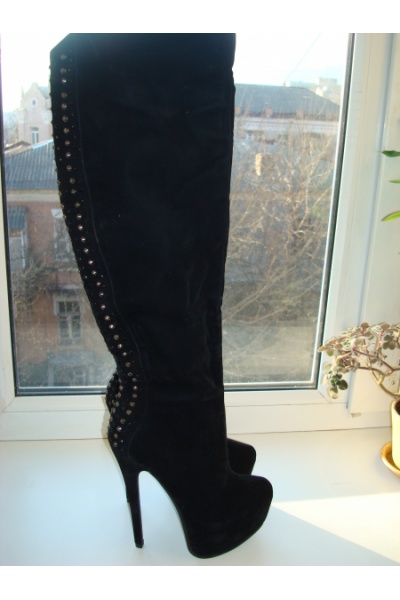 Шикарные женские сапоги демисезонные Publicite от AX Paris. Застегиваются на внутренней молнии, вверху на голенище скрытые резинки. Высота каблука - 16 см, высота платформы - 5,5 см.