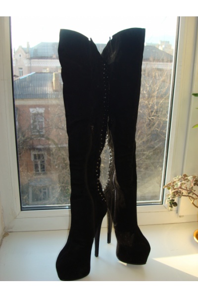 Шикарные женские сапоги демисезонные Publicite от AX Paris. Застегиваются на внутренней молнии, вверху на голенище скрытые резинки. Высота каблука - 16 см, высота платформы - 5,5 см.