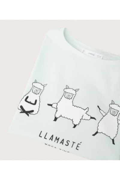 Стильні футболки для дівчаток від популярного іспанського бренду Mango. Ніжний пастельний м´ятний колір. Оригінальний принт.