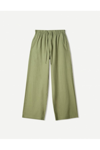 Стильні жіночі штани від Bershka (Іспанія). Вільний крій. Актуальний крій хакі. Талій ни широкій резинці, додатково регулюється шнурком. Дві бокових кишені. Легка приємна тканина.
